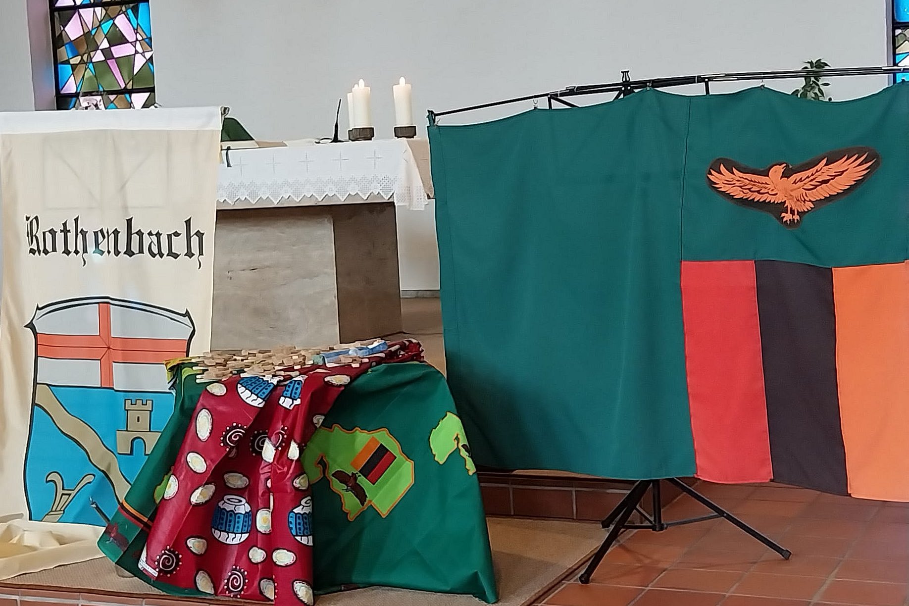 Neben Rothenbach unterhalten Neu-Ansbach, Flörsheim und Hadamar eine Partnerschaft mit dem Bistum Ndola in Sambia. Mit Geldspenden konnten Armenspeisung und Schulbildung finanziert werden. Darüber hinaus konnte eine Nähschule gegründet und ein landwirtschaftliches Projekt gefördert werden. Besuche des Sambiakreises nach Sambia sowie Gegenbesuche aus dem Partnerbistum Ndola in Sambia festigten die Partnerschaft. Gemeindemitglied Johannes Ruß aus Kölbingen absolvierte in unserer Partnerdiözese sein internationales freiwilliges soziales Jahr.